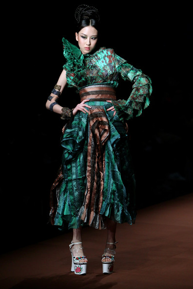 Darlings, there's no focussed point to this post. It's all about the pretty and the eye-popping and the downright strange. In short, it's all about China Fashion Week. Enjoy the visuals. We're on our way out the door to buy ourselves matching accordion pants. We predict everyone will be wearing them next season and we just want to get in on the ground floor.